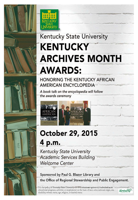 KSU President Raymond M. Burse will give opening remarks at the event, and a book talk about the cultural and historical reference will follow the award presentation. For more information, contact Sharon McGee, the Archives Records Manager, 502-597-6864 or sharon.mcgee@kysu.edumailto:sharon.mcgee@kysu.edu