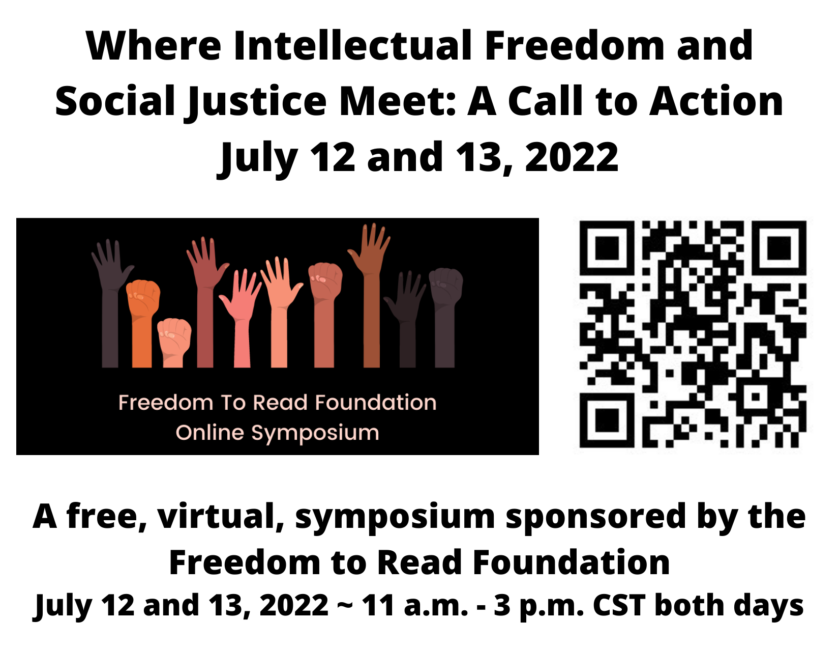 The Freedom to Read Foundation (FTRF) invites all library workers, educators, authors, journalists, publishers, social justice workers and First Amendment advocates to attend and participate in its free virtual symposium, Where Intellectual Freedom and Social Justice Meet: A Call to Action to be held on July 12 and 13, 2022. The symposium will take place from 12:00 Noon to 4:00 PM Eastern / 11:00 AM-3:00 PM Central on both days.